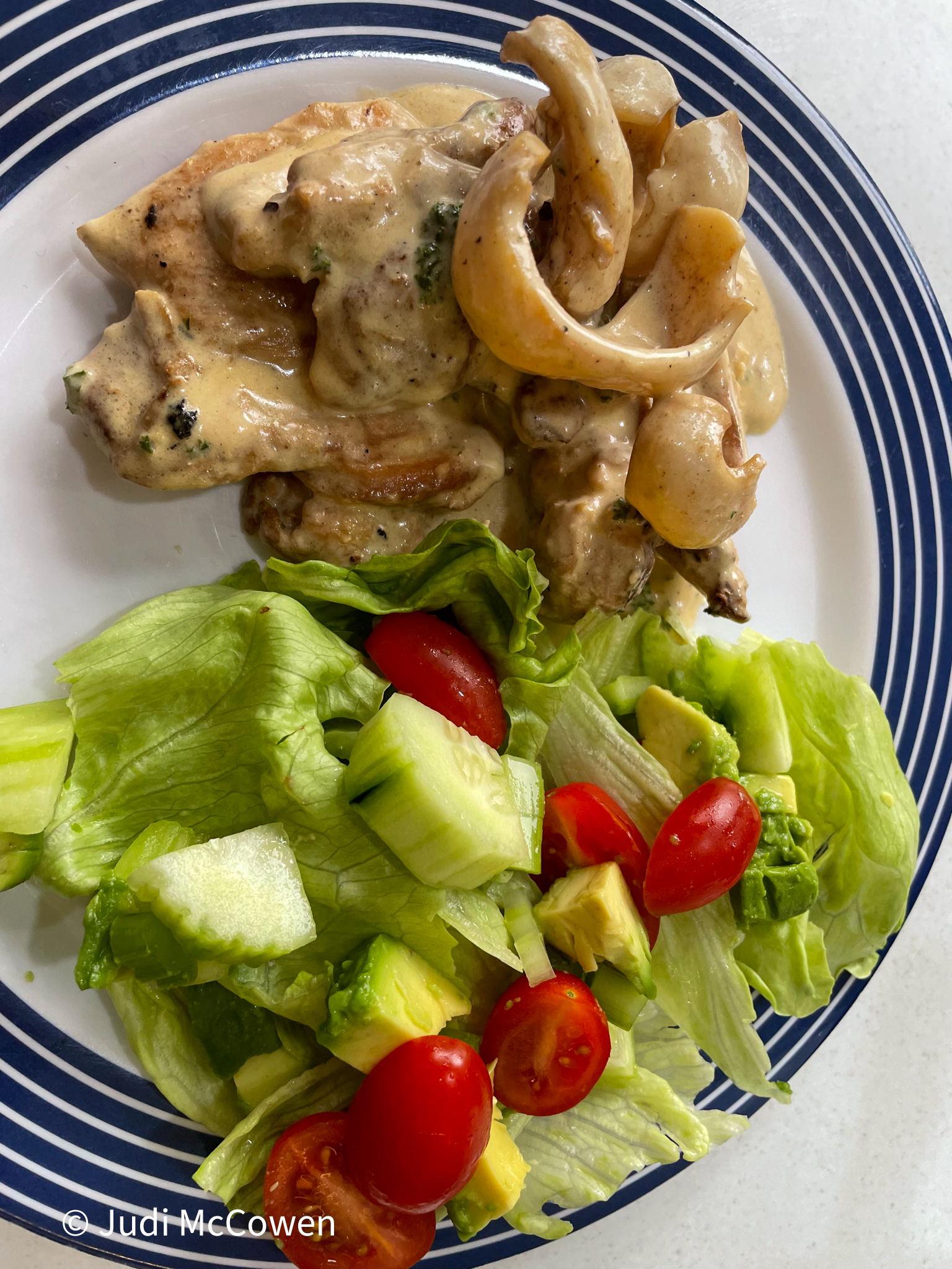 Back in the car we make our way to Big Tree Grove that is very well named. There are some huge trees here. It was raining at this stop so I didn't leave the car but Philip got out and read the information board. What it said in a nutshell was that the Kari lives to around 300 years of age but then it starts the dieback process. The first thing that happens is the "lumps" that appear up and down the trunk and then algae starts attacking the tree from the bottom and it is at that stage that the tree will completely die. This process could take many decades. I took a photograph of an old stump and was intrigued the way Mother Nature simply recycles the old tree.The drive along the Great Forest Trees Drive continually changed. For a few kilometres we are in Kari Forests and then we are in open swampland where Callistemon are the only tree. A bit further along and we are in timbered country with an abundance of a purple flowering bush that look very much like the bush that I would call a Geisha Girl. It is quite a wonderful drive.The drive ended for us at the Shannon Dam and Campground. I forgot to get photographs but what a lovely place to stay if you enjoy camping. We chose to travel home via Deeside Coast Road that is around 30 kilometres of fairly well maintained gravel. Both the forest drive and this road are used by timber logging trucks and around every corner we expected to run into one of the trucks but fortunately didn't. Deeside Coast Road ends at the Muir Highway where we turn left and head back towards Manjimup.We were home by 1.00 pm for us to cook up the Abalone from Augusta for our lunch today. I also added some Chicken Thighs and once both were cooked they went into a sauce made up of Cream, Lemon Juice, Chicken Stock and Parmesan Cheese. It was a delicious sauce that I will certainly make again. The Abalone was interesting. It has the texture of Squid and certainly rolls itself up like squid as it is flash fried, but it has a different taste entirely and one that I could eat again and again if not for the exorbitant price tag. Philip made us a tossed salad to go with the Chicken/Abalone and it was a match made in heaven.